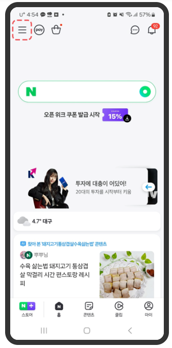 - 네이버 앱 실행 → 전체메뉴 클릭