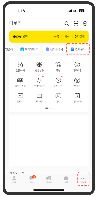 - 카카오톡 앱 실행 → 상단 검색창에 ‘국민비서’ 검색