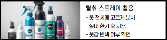 이 방법은 옷감을 상하지 않게 하면서도 재빨리 냄새를 제거할 수 있어 급하게 외출 전에도 유용하게 사용할 수 있습니다.