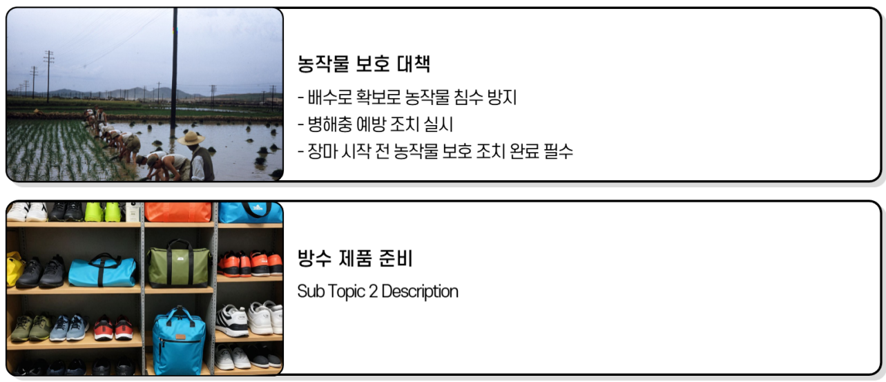 - 배수로 점검: 집 주변 배수구, 하수구는 장마 전 미리 점검 및 청소해 침수 피해 예방!